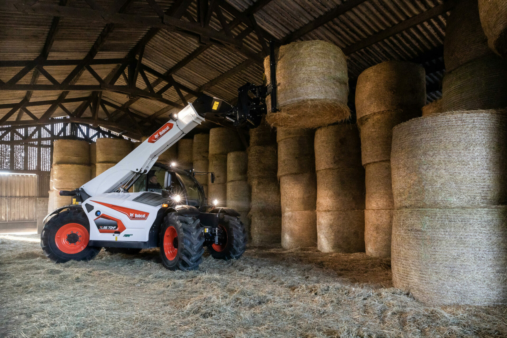 Der Bobcat-Teleskoplader TL38.70HF der R-Serie bietet einen erstklassigen Arbeitsplatz mit einer großräumigen Kabine mit patentierter Bauweise und hervorragender Sicht, um effizientes und sicheres Arbeiten zu ermöglichen. Die imponierenden Auslegergeschwindigkeiten und Hochleistungshydraulik sind die perfekte Lösung für Ihren Bauernhof.